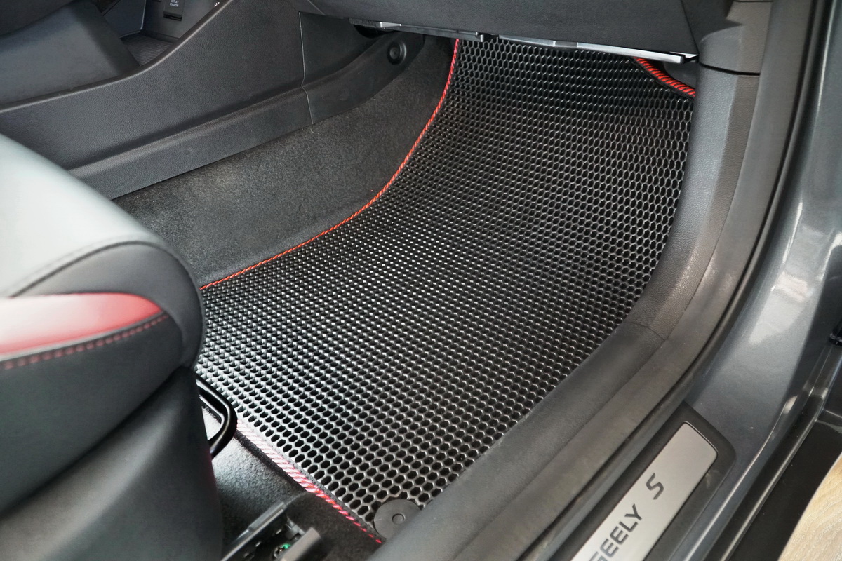 Толщина ковриков EVA составляет 10-12 мм. Глубина ячеек 7-8 мм. Такая толщина ковриков позволяет им служить довольно долго, не протираясь до 3 лет. А благодаря такой глубине ячеек коврик EVA площадью 1 кв.м. способен захватить около 3,5 л жидкости, сохраняя в чистоте вашу обувь и обивку салона.