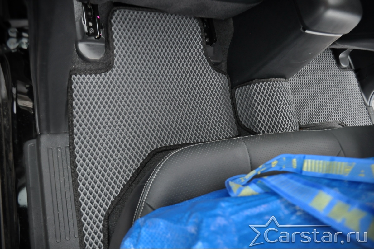 Толщина ковриков EVA составляет 10-12 мм. Глубина ячеек 7-8 мм. Такая толщина ковриков позволяет им служить довольно долго, не протираясь до 3 лет. А благодаря такой глубине ячеек коврик EVA площадью 1 кв.м. способен захватить около 3,5 л жидкости, сохраняя в чистоте вашу обувь и обивку салона.
