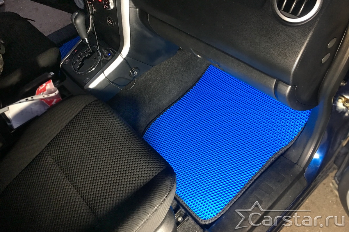 Толщина ковриков EVA составляет 10-12 мм. Глубина ячеек 7-8 мм. Такая толщина ковриков позволяет им служить довольно долго, не протираясь до 3 лет. А благодаря такой глубине ячеек коврик EVA площадью 1 кв.м. способен захватить около 3,5 л жидкости, сохраняя в чистоте вашу обувь и обивку салона.