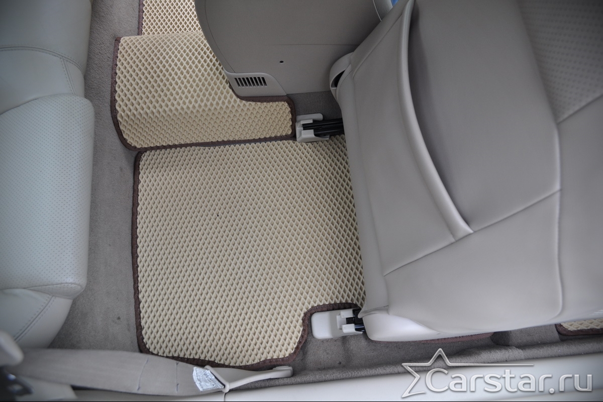 Толщина ковриков EVA составляет 10-12 мм. Глубина ячеек 7-8 мм. Такая толщина ковриков позволяет им служить довольно долго, не протираясь до 3 лет. А благодаря такой глубине ячеек коврик EVA площадью 1 кв.м. способен захватить около 3,5 л жидкости, сохраняя в чистоте вашу обувь и обивку салона.