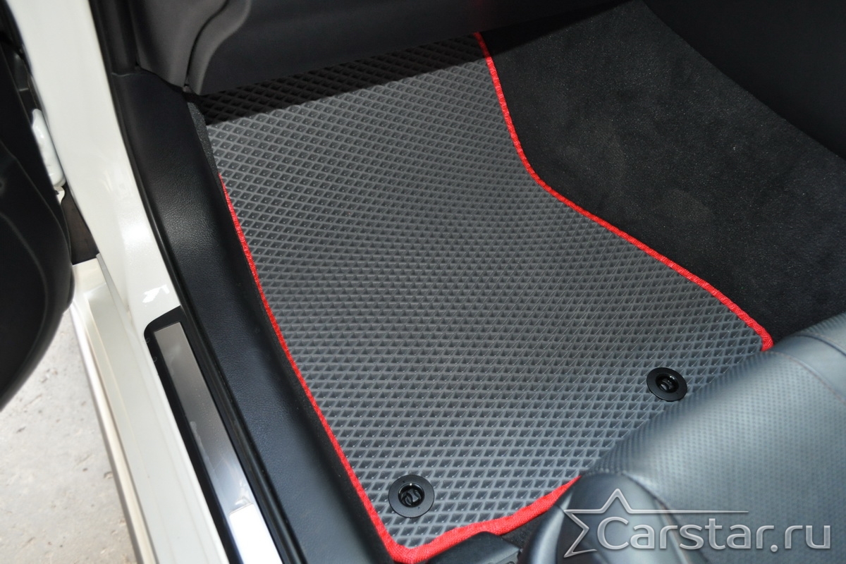 Автомобильные коврики EVA прекрасно подходят для всех существующих марок и моделей авто, здесь вы сможете заказать оптимальный аксессуар любого возможного цвета. По размерам они больше, чем стандартные резиновые коврики, поэтому покрывают максимальную площадь пола в салоне. А двойная система креплений (клипсы и липучки) позволяет надежно зафиксировать коврики в нужном месте.