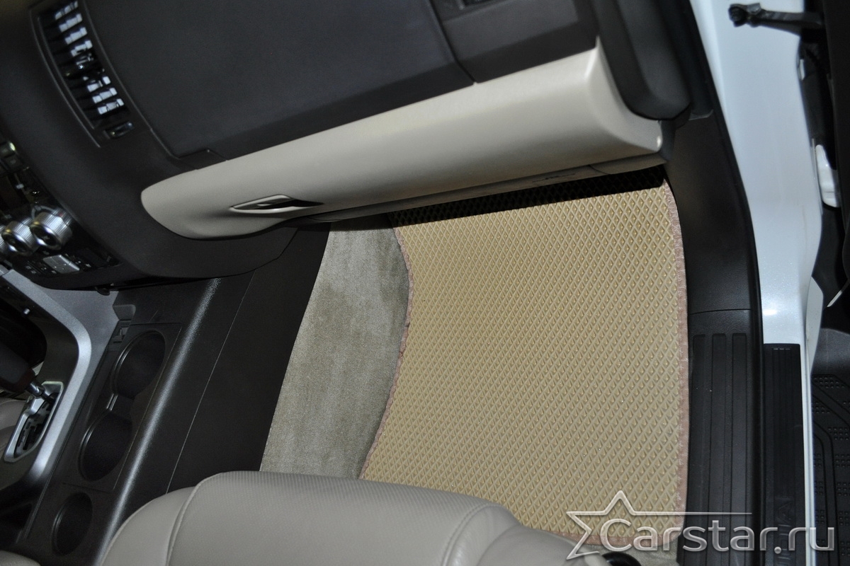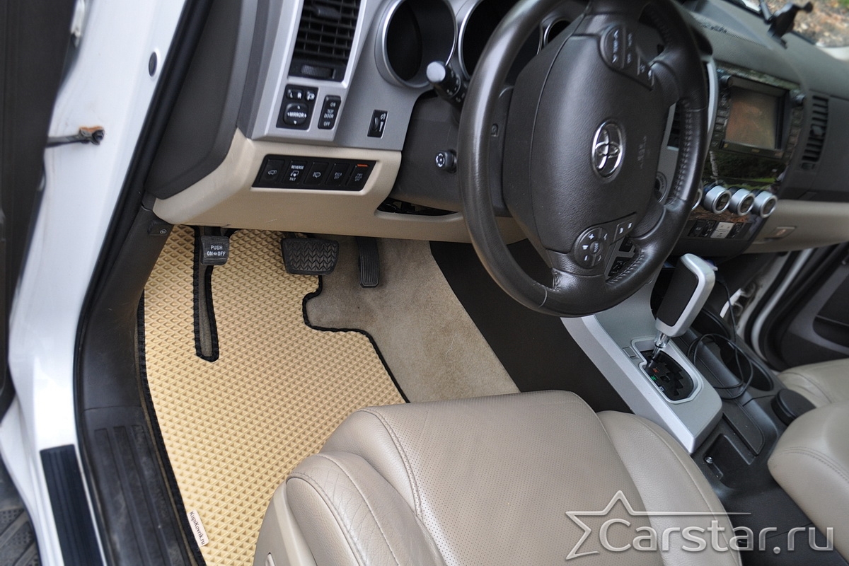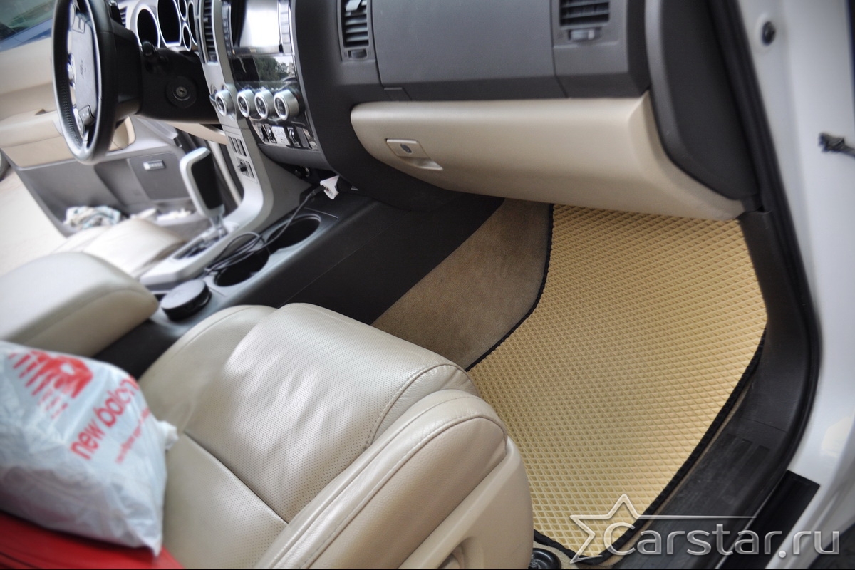 Текстильные автомобильные коврики Toyota Sequoia II 3 ряда (2008->) – это классический аксессуар, который обеспечит салону автомобиля неизменную чистоту, порядок и уют. Компания Carstar предлагает изделия из качественного ковролина в сочетании с полипропиленовым основанием на шипах, такая комбинация делает их прочными и водонепроницаемыми.